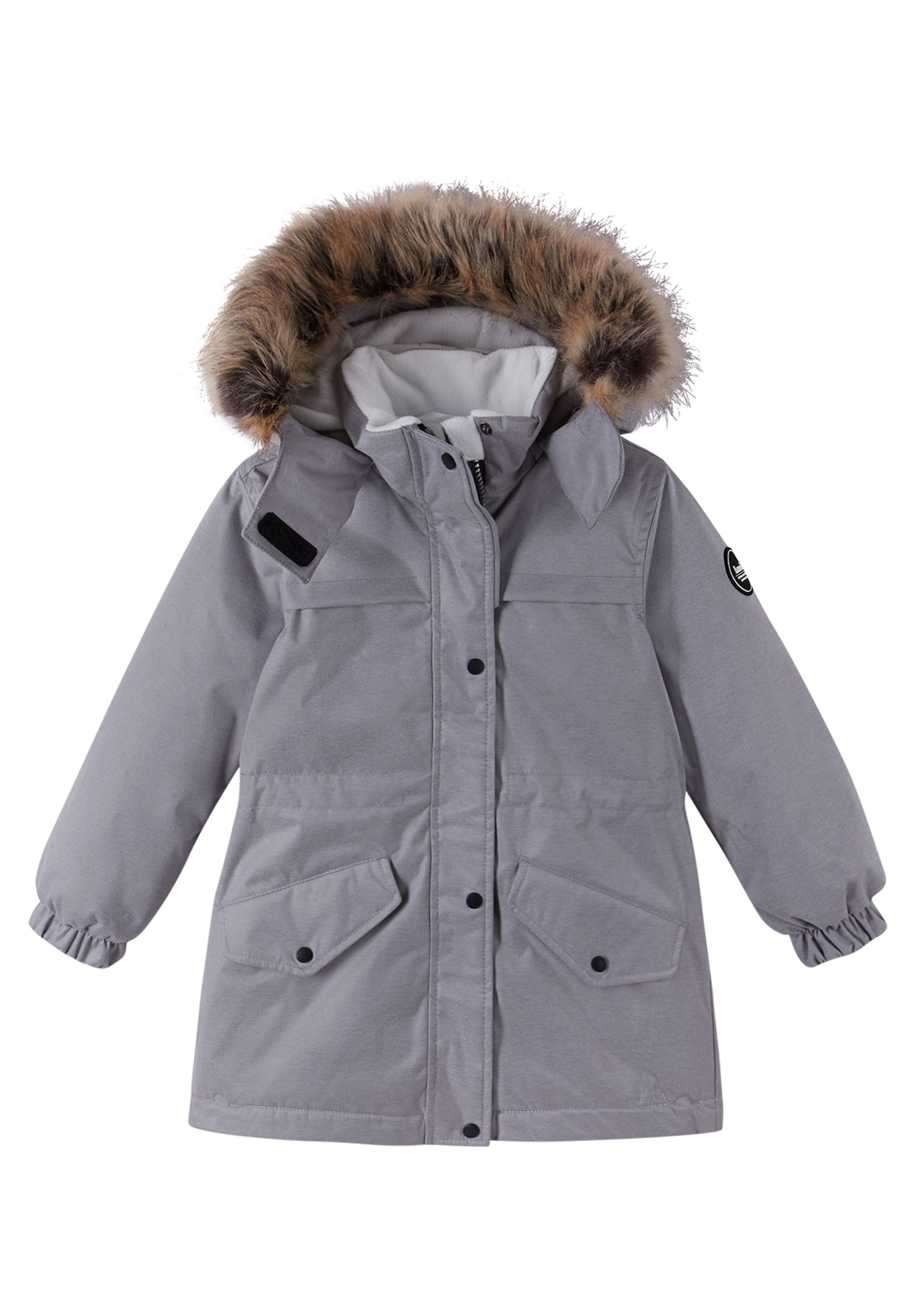 Зимняя парка для девочки Lassie by Reima Selja, модель 7100027A-9090 из новой зимней коллекции 2022/2023. Зимняя парка красивого сркого цвета отлично подойдет активным девочкам для каждодневного отдыха на свежем воздухе, надежно защитит от холода и ветра и обеспечит максимально комфортные ощущения на длительное время. Практичная и удобная удлиненная модель хорошо садится по фигуре как совсем маленькой модницы так и девочек постарше, безопасный съемный капюшон украшен каймой из искусственного меха что добавляет привлекательности такой куртке. Модель очень теплая и надежная, изготовлена из водо- и ветронепроницаемого материала, с "дышащей" основой и грязеотталкивающей пропиткой, внутри утеплитель высокой степени на гладкой подкладке из полиэстера. Куртка с эластичными манжетами и регулируемой талией, застегивается на длинную молнию вдоль изделия с ветрозащитной планкой спереди. По бокам два удобных кармана на кнопках для личных вещей.