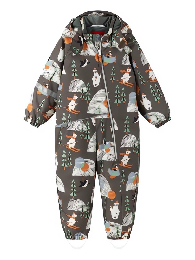 Цей гарний комбінезон для малюків сповнений чарівного духу зими, і при цьому дуже практичний. Довга блискавка спереду полегшує надягання, а знімні штрипки не дають кінцям холош задиратися. Комбінезон виготовлений з міцного, вітронепроникного та дихаючого матеріалу з верхнім водо- та брудовідштовхуючим шаром, він забезпечує повний комфорт під час веселих прогулянок. Задній середній шов проклеєний, водонепроникний.