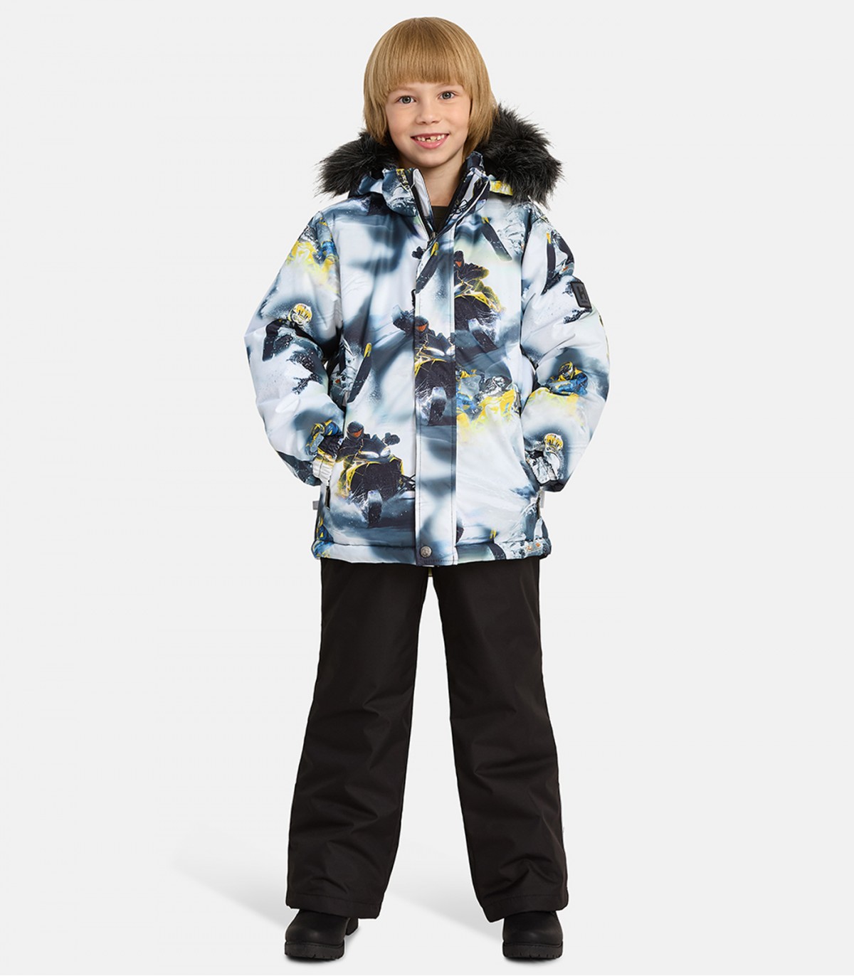 Зимовий комплект для хлопців HUPPA DANTE 41930030 з нової колекції Huppa Fashion 2024/2025. Куртка з м'якої мембранної тканини з гарним принтом має подовжений крій, тому краще захищає від холоду та вітру. Манжети на рукавах із м'якою окантовкою всередині. Капюшон з хутряним оздобленням застібається спереду на липучках. За бажання можна відстебнути хутро, а також зняти каптур повністю. Плечові шви проклеєні для кращого захисту від вологи. Прямі штани без спинки, зроблені з міцнішої мембранної тканини, застібаються на блискавку і кнопку. Підтяжки регулюються по довжині та легко знімаються. Кроковий шов проклеєний по всій довжині, тому можна кататися з гірки без ризику промокнути. Внутрішні гетри захищають взуття дитини від снігу.