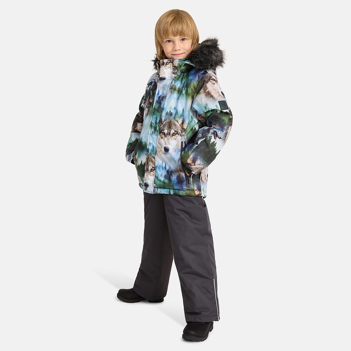 Зимовий комплект для хлопців HUPPA DANTE 3 41930330, колір 42299 з нової колекції Huppa Fashion 2024/2025. Куртка з м'якої мембранної тканини з гарним принтом має подовжений крій, тому краще захищає від холоду та вітру. Манжети на рукавах із м'якою окантовкою всередині. Капюшон з хутряним оздобленням застібається спереду на липучках. За бажання можна відстебнути хутро, а також зняти каптур повністю. Плечові шви проклеєні для кращого захисту від вологи. Прямі штани без спинки, зроблені з міцнішої мембранної тканини, застібаються на блискавку і кнопку. Підтяжки регулюються по довжині та легко знімаються. Кроковий шов проклеєний по всій довжині, тому можна кататися з гірки без ризику промокнути. Внутрішні гетри захищають взуття дитини від снігу.